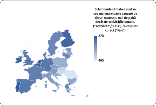Un studiu realizat în 2019 asupra tinerilor din 10 țări din Sud Estul Europei arată că în România proporția celor care cred că ”poluarea și încălzirea globală nu sunt îngrijorătoare” este de doar 21%, valoare mai ridicată decât în Slovenia (14%), Croația (16%) și Bulgaria (16%), și mai scăzută decât în Albania, Kosovo, Bosnia-Herțegovina, Serbia și Montenegro.